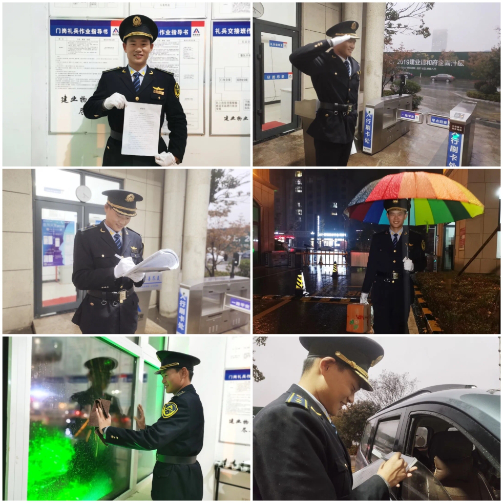 標(biāo)準(zhǔn)的動(dòng)作、統(tǒng)一的服裝、整齊的隊(duì)伍……禮儀固然重要,但比著這些,我覺(jué)得良好的精神面貌、親切簡(jiǎn)單的問(wèn)候、熱情洋溢的笑臉更令我舒心和愉悅!小區(qū)里的禮兵們都很有禮貌,這位小哥哥可能做得更出色一點(diǎn),他似乎每天都很開心,每天都充滿活力,讓每一位見到他的人都會(huì)被他積極樂(lè)觀的工作態(tài)度所感染,也由衷地敬佩他!